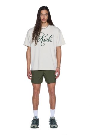 The 1999 Boardshort Militant is a regular-fit boardshort with an elastic waistband and drawstring. Made from premium water-resistant fabric in military green. it features a rubber branded patch and is finished with branded metal trims. T-box charm. and Ksubi T-box printed branding.
