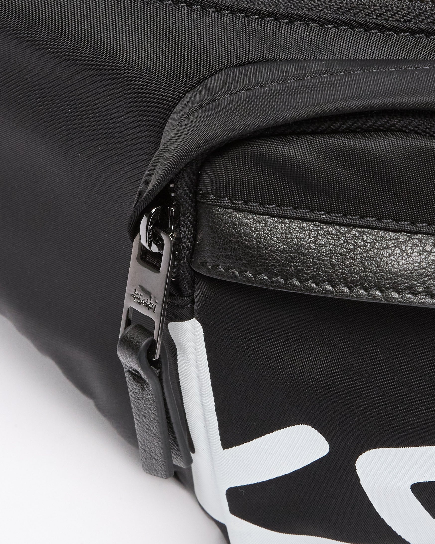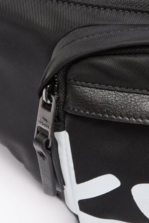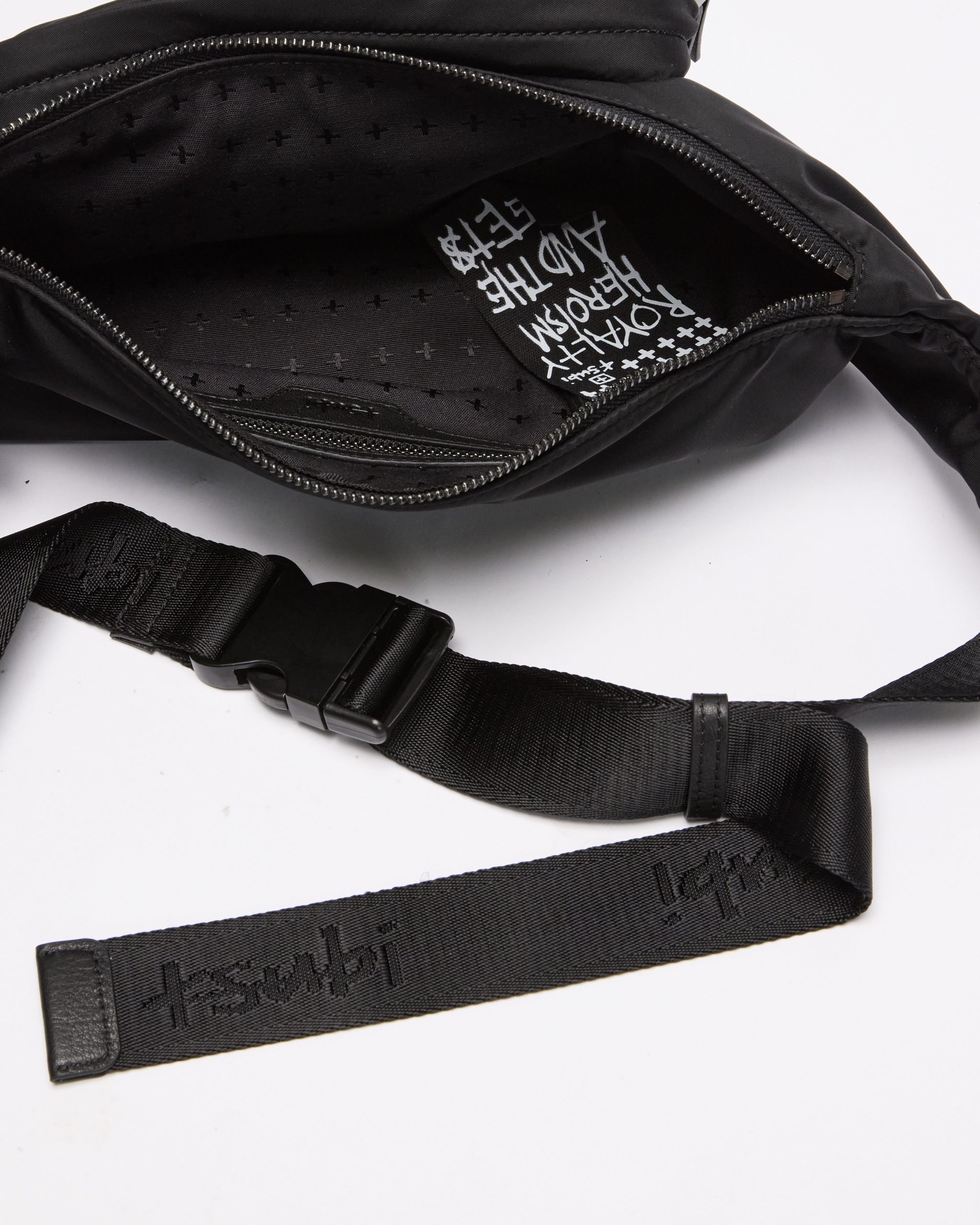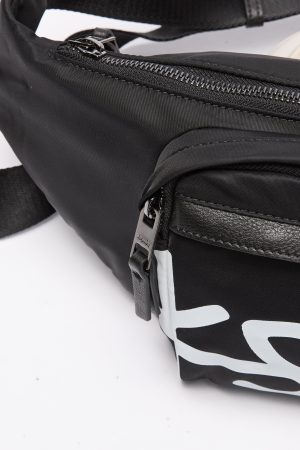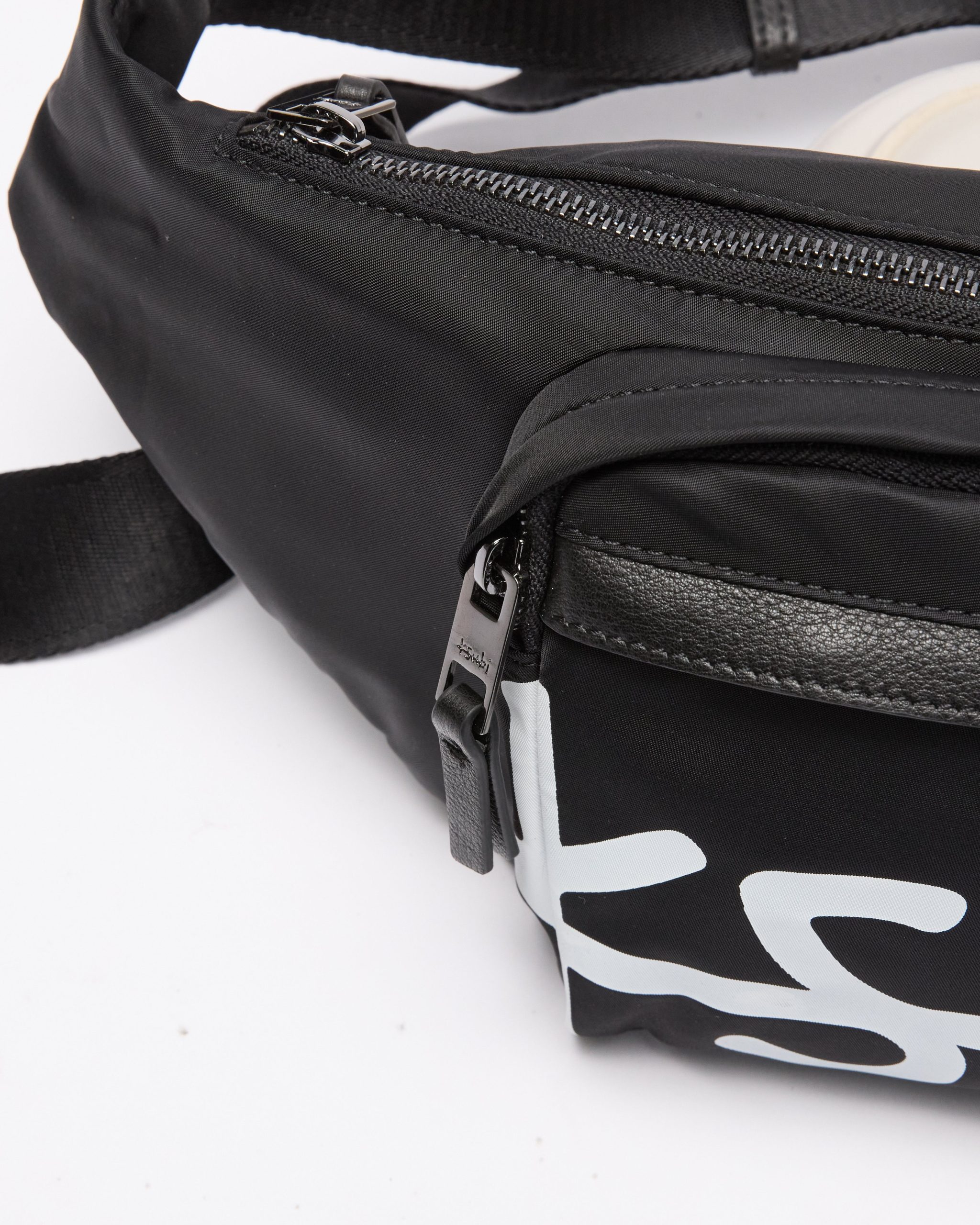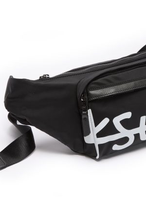 The 1999 Nylon Stash Bag is made from black nylon featuring interior pocket with a zip fastening front pocket. Featuring a large adjustable shoulder strap with a Ksubi branded logo and signature T-box detailing.