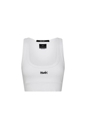 The 1999 Origin Crop Tank White is a scoop neck fitted tank top in a white colorway. featuring a racerback design and cropped length. Made from premium midweight rib fabric with a smooth. dry hand feel. it includes an internal shelf bra for added support and a raw cut hem. finished with T-box embroidery and a front Ksubi logo graphic. It’s a branded basic that pairs perfectly with any Ksubi denim.