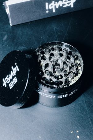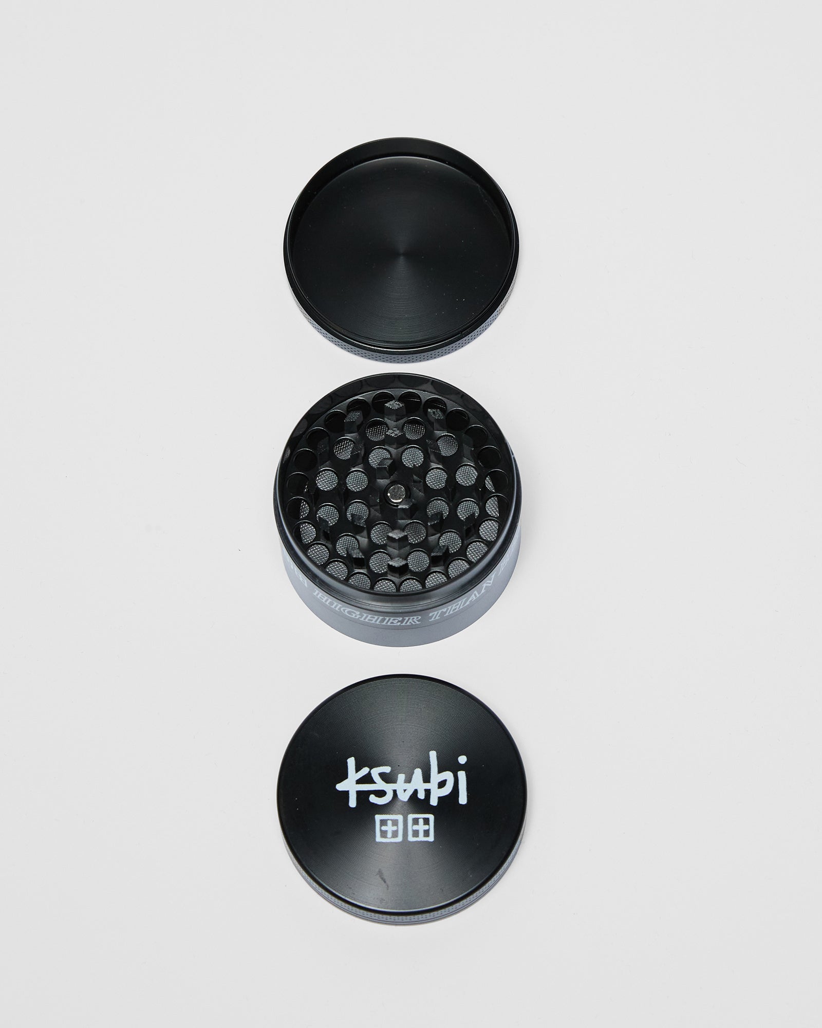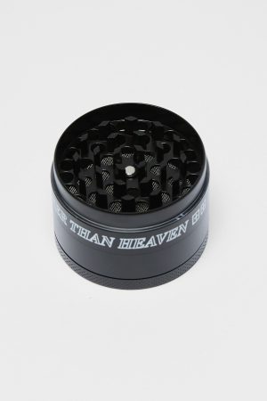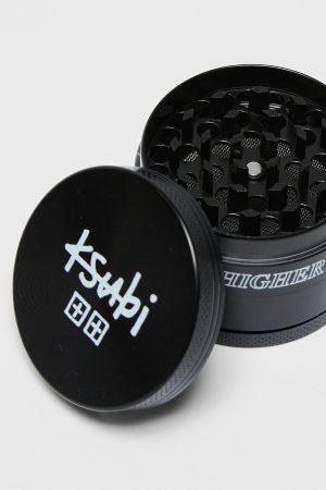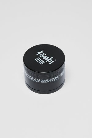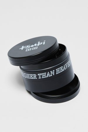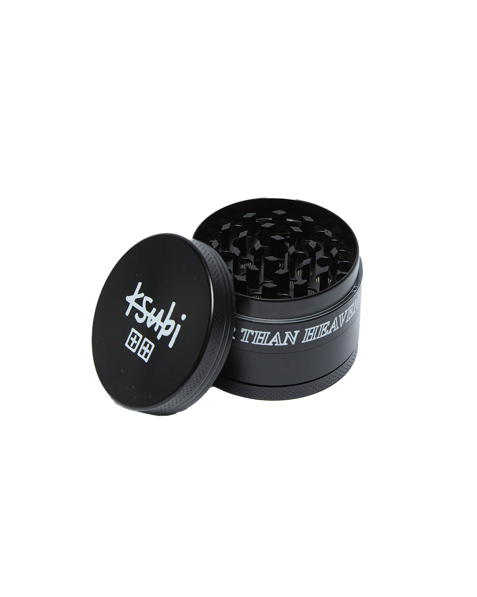 The 247 grinder is a classic 4 piece herb grinder featuring ‘Higher Than Heaven’ text around the centre piece and Ksubi logo & t-boxes on the top. The grinder comes with a kief scraper on bottom compartment. sifting screen. sharp teeth and a magnetic lid.