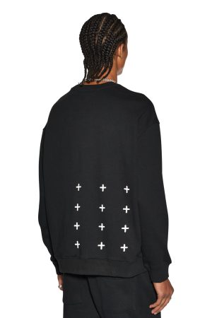The 4 X 4 Biggie Crew Jet Black is an oversized crew neck sweater featured in a black colourway. Constructed from a premium cotton loopback fleece. the crew is garment dyed and finished with an aged wash. This style features the original Ksubi oversized back 4×4 cross print. front cross dollar embroidery. signature rats tail and Ksubi t-box printed branding.