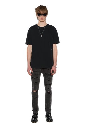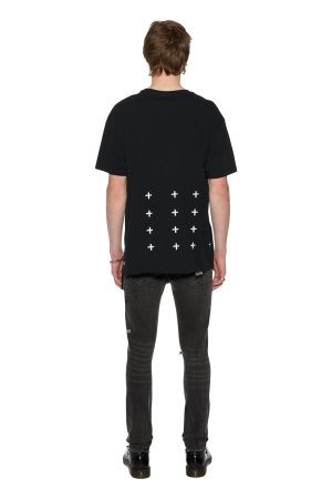 The 4 X 4 Biggie Short Sleeve T-Shirt Jet Black is an oversized fit featured in a black colourway. Constructed from a premium cotton open ended jersey. the tee is garment dyed and finished with an aged wash. This style features the original Ksubi oversized back 4×4 cross print. raw back hem detail. front cross dollar embroidery. reverse overlocked side seams. signature rats tail and Ksubi t-box printed branding.
