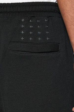 The 4 X 4 Trak Short Jet Black is a regular fit track short featured in a black colourway. Constructed from a premium cotton loopback fleece. this track pant is garment dyed and finished with an aged wash. This style features side seam pockets. draw cord with branded metal ends. back 4×4 cross embroidery. cross dollar embroidery and Ksubi t-box printed branding.