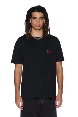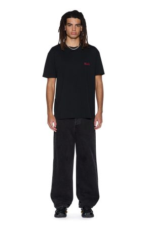 The All Day Biggie SS Tee Red is an oversized fit short sleeve t-shirt with a raw-cut back hem. reverse overlocked side seams. and signature rats tail. Made from a premium cotton jersey garment dyed faded black. it features Ksubi 1999 embroidery at the front crest and is finished with signature T-box and 4×4 branding.