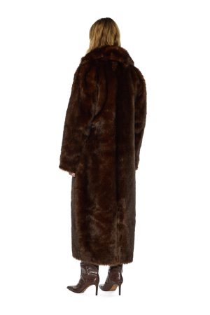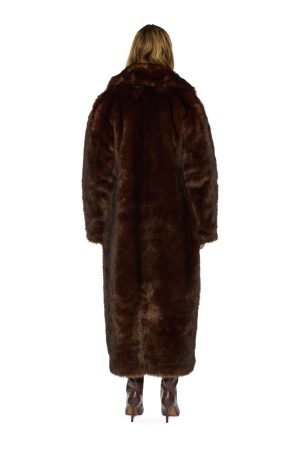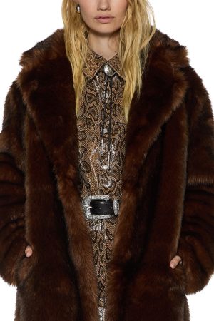 The Alton Fur Jacket Tawny is an oversized full-length coat crafted from premium two-tone textured faux fur in brown and black. Featuring an exaggerated lapel collar. invisible hook and eye closures at the centre front. side seam pockets. and fully lined with branded lining for a luxurious finish.