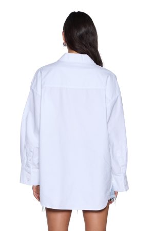 The Astra Long Sleeve Shirt White Oxford is an oversized button-up shirt made from premium 100% cotton oxford shirting fabric. featuring a patch pocket. curved hem. and a classic style front collar with exaggerated cuffs. Finished with a Ksubi woven ‘SOTT’ label on the sleeve. Ksubi T-box. and Cross dollar embroidery.