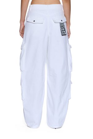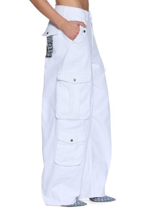 The Barrel Jean Cargo Fresh is a mid-rise. relaxed-fit jean with a distinctive barrel-shaped leg that tapers at the ankle. Made from premium European rigid denim in fresh white with tonal topstitching. it features side-facing 3D cargo pockets. curved western-inspired panel lines on the front and back thighs. Ksubi branded hardware. T-box and 3×4 embroidery. and a removable pocket tag on the wearerÕs right back pocket. designed for a flattering. sculptural silhouette. Style back with the Trucker Vest Fresh for an all-white elevated look.