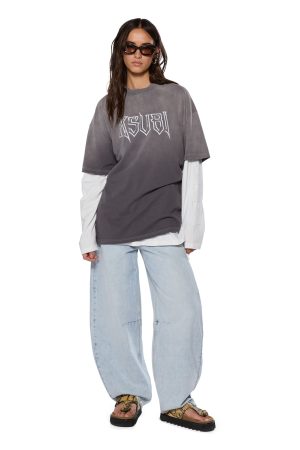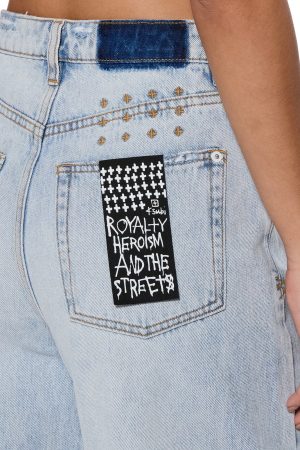 The Barrel Jean Statik is a new fit for Spring 25. featuring a mid-rise. relaxed fit with a distinctive barrel-shaped leg that tapers at the ankle. Made from premium rigid soft blue denim with heavy stone wash applied and subtle grinding at the waistband. pockets. and hem. it includes classic five-pocket styling. worn white Ksubi branded hardware. T-box and 3×4 embroidery. and a removable pocket tag attached to the wearer’s right back pocket. Designed to offer a flattering and sculptural silhouette to any wardrobe.