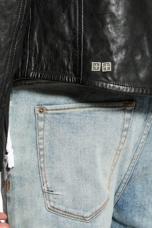The Capitol Leather Jacket is constructed from 100% premium heavyweight calf leather featured in a black colourway. This jacket is a classic biker fit featuring a quilted lining. antique silver zippers and branded hardware. 4×4 cross detail and Ksubi t-box branding on the back.