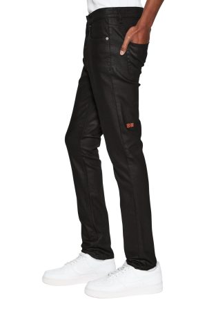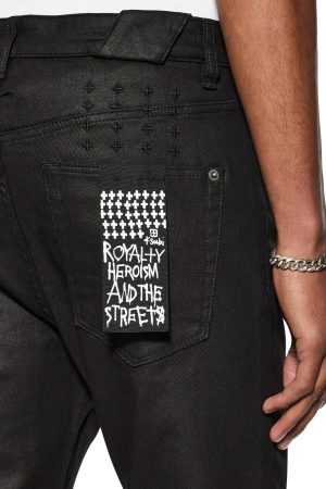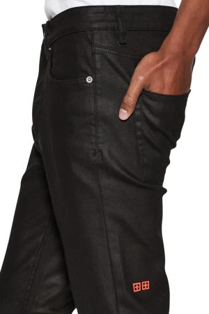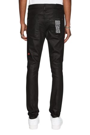 The Chitch Black Wax is a slim fit jean with a mid rise with unique Ksubi angled dutch tab and tucks. Made from a premium comfort stretch denim with wax coating in a black colourway. This style features back 4×4 cross embroidery. contrast t-box printed branding. signature woven pocket flag and finished with signature Ksubi branding.