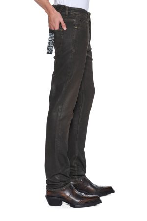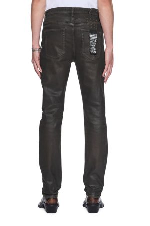 The Chitch Grease is a slim tapered jean with a mid-long rise and signature Dutch tab. Made from premium comfort stretch black denim with a waxy-rusted wash. it’s finished with signature T-box and 4×4 embroidery and Ksubi hardware.