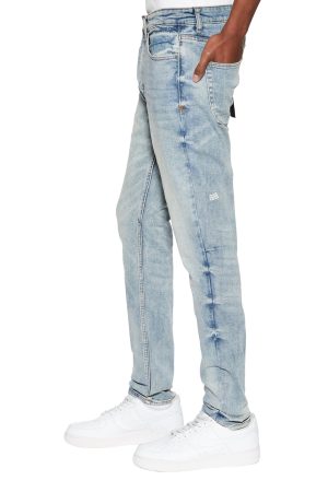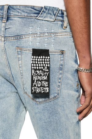 The Chitch Pure Dynamite is a mid rise. slim fit. tapered denim jean featured in a vintage deep blue wash colourway with strong highlights and an aged tint. Constructed from a heavy duty. European comfort cotton stretch denim.