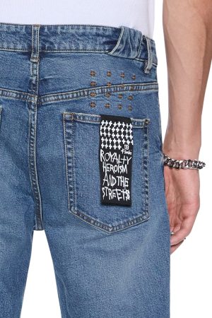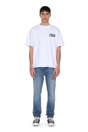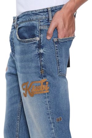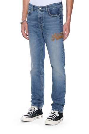 The Chitch Relik is a slim tapered jean with a mid-long rise and signature dutch tab. Made from European indigo comfort stretch denim in a mid-blue vintage wash with authentic ageing treatments. it features heavy seam grinding in naturally worn areas and is finished with signature T-box and 4×4 embroidery and Ksubi branded hardware.