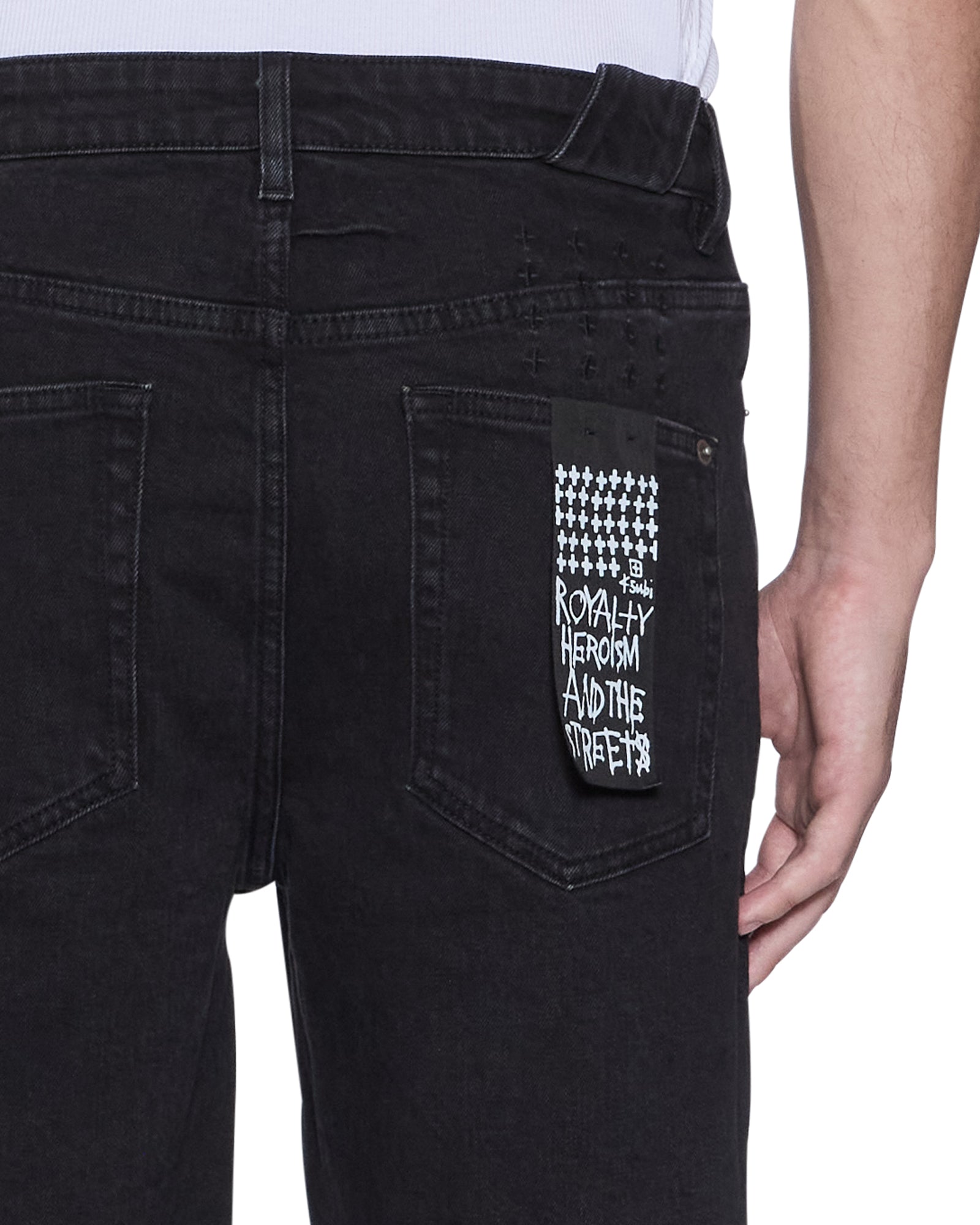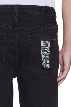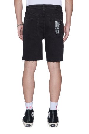 The Chopper Short Noir is a mid rise. slim fit denim short. Constructed from a premium rigid denim featured in a black colourway. This short features trashing and heavy distressing and is finished with the signature Ksubi 4×4 detailing and removable back pocket tag.