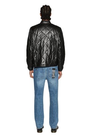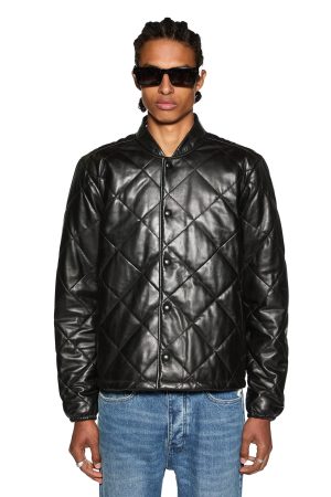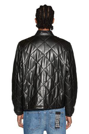 The Eclipse Quilted Bomber Black is a leather jacket. designed with a quilted diamond lining. Featuring jet pockets. t-box branding and ksubi branded hardware.