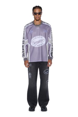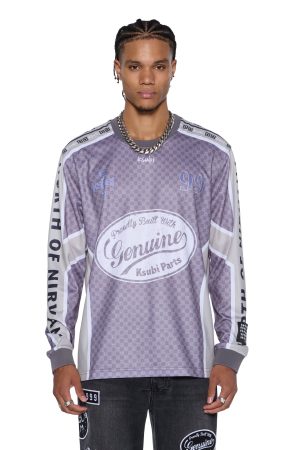 The Garage LS Moto Jersey Moss Black is a regular fitting. moto-inspired jersey with long sleeves. ribbed sleeve cuffs. and a ribbed neckline. Cut from a technical moto jersey fabric. it features engineered digitally printed artwork placements and is finished with signature T-box and 4×4 branding. along with a Ksubi sleeve tag detail.
