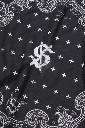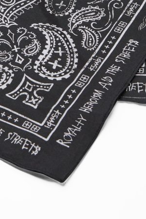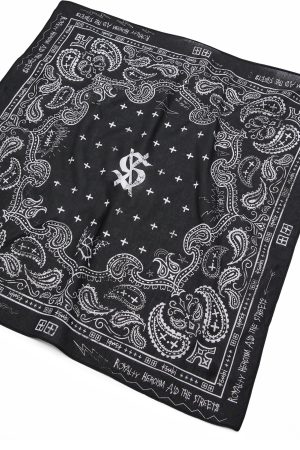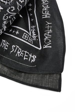 The Ghosted Bandana Black/White is inspired by a traditional bandana designs. printed with an exclusive customised print using Ksubi details. This bandana is made from a black lightweight cotton fabric with a white design.