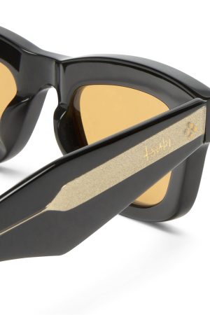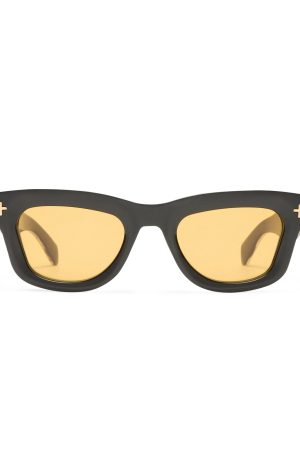 Goodsen Sunglasses Black Gold feature an everyday D-frame crafted from 8mm black acetate for a bold and lasting look. Complete with premium CR39 lenses. 7-barrel pin hinge. and protective packaging including a custom toughbox. drawstring pouch. and signature black-on-black Ksubi coffin box.