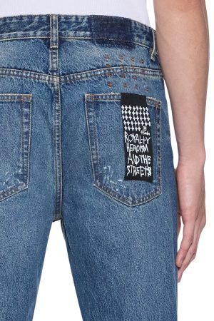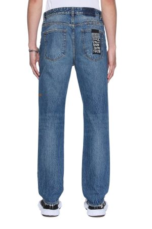 The Hazlow Relik is a mid-rise. relaxed straight-leg jean with a regular leg opening. Made from premium rigid denim with a mid-blue vintage wash and ageing treatments. it is finished with signature T-box and 4×4 embroidery. ghost patch detailing. and Ksubi branded hardware.