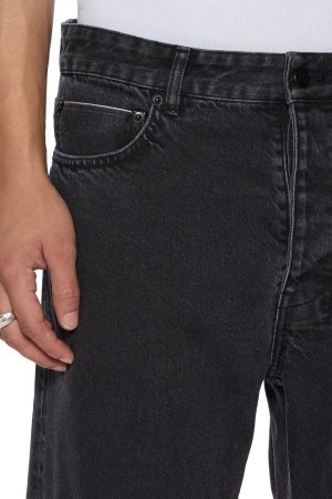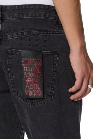 The Hazlow Selvedge NY Black is a mid-rise relaxed straight-leg jean with a regular leg opening. Manufactured in Portugal with a sustainable approach to fabric and laundering processes. it is cut from a 13.5oz rigid European black selvedge denim that is overdyed and stone washed. Finished with Ksubi signature T-box and 4×4 embroidery. a custom selvedge pocket tag. and Ksubi branded hardware.