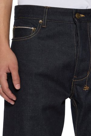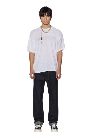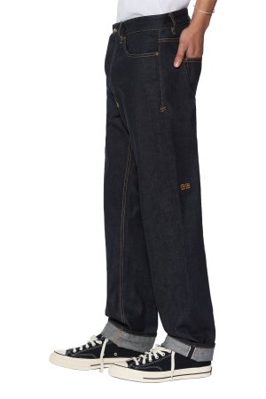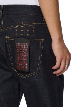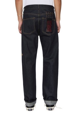 The Hazlow Selvedge Raw Blue is a mid-rise relaxed straight-leg jean with a regular leg opening. Manufactured in Portugal with a sustainable approach to fabric and laundering processes. it is cut from a 13.5oz rigid European indigo selvedge denim with no wash. Finished with Ksubi signature T-box and 4×4 embroidery. a custom selvedge pocket tag. and Ksubi branded hardware.