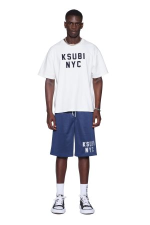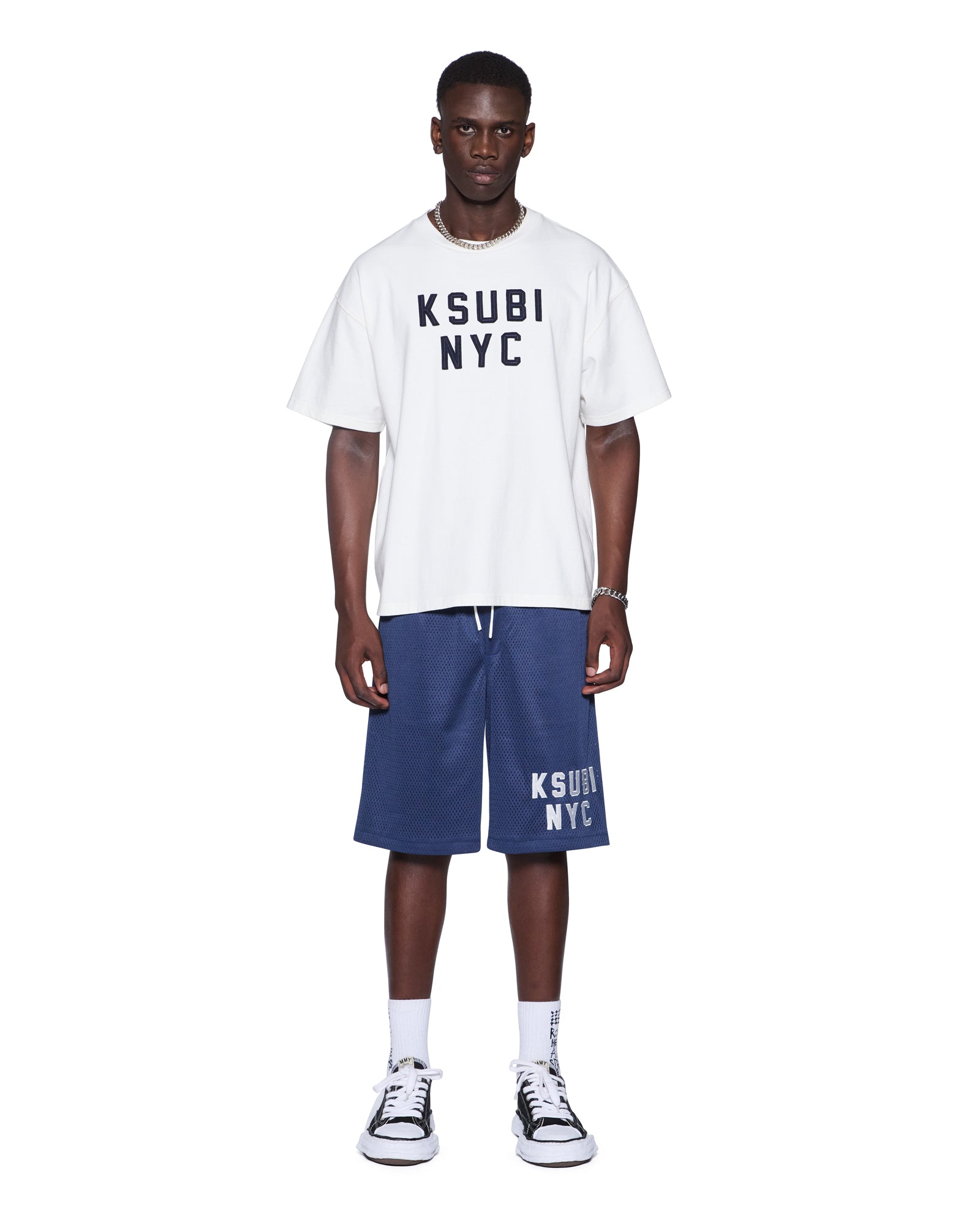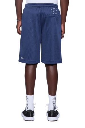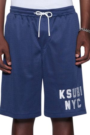 The K-Lock NYC Mesh Roll Short Navy is a basketball-inspired mesh short with a long. wide-leg cut and an elastic waistband for comfort. Made from premium navy mesh fabric. it features seasonal embroidered artwork. side pockets. rear welt pockets. and is finished with signature Ksubi embroidered branding.