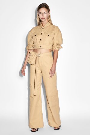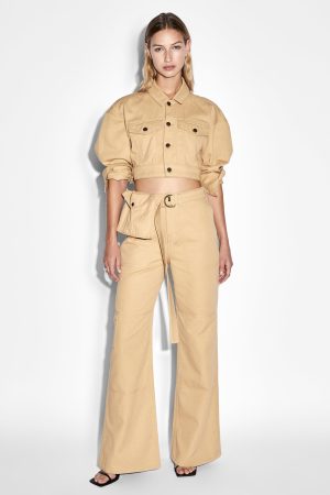The Kommand Cargo Caramel is a wide leg. full length cargo jean with a high rise and fit based on the best selling Dettached jean without the cutout. Made from premium European drill in a neutral caramel colourway. this jean features a removable belt. belt bag with debossed Ksubi logo and cargo pocket detailing. Finished with branded hardware. Ksubi t-box print and 3×4 embroidery. Pair with the ‘Kommand Jacket Caramel’ for a full look.