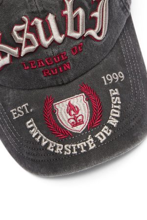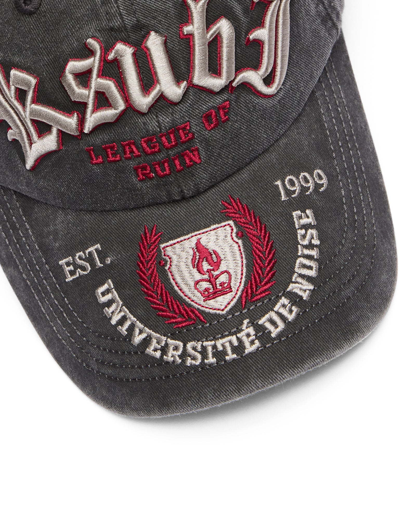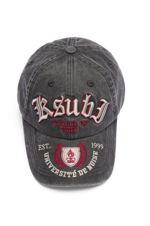 The League Dad Cap Black is made of durable cotton fabric. treated with a soft enzyme wash. The front panels feature an applique artwork across the front. Our Ksubi logo is on the internal with branded seam tape finishing the interior.