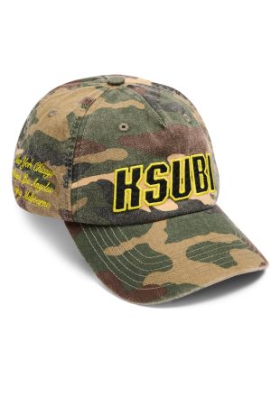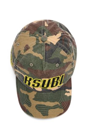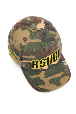 The Low Profile Cap in camo is made of durable ripstop fabric. treated with a soft enzyme wash. The front panels feature an applique logo across the front. Our Ksubi logo is on the internal with branded seam tape finishing the interior.