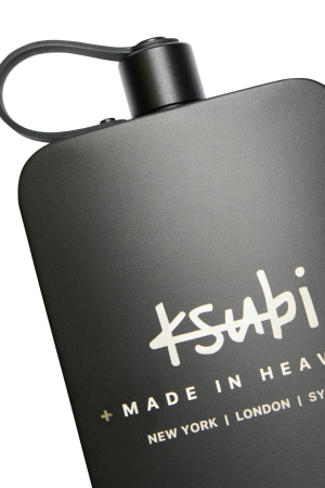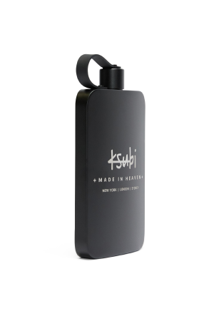 The 1999 Bottle combines durable stainless steel with a sleek black powder-coated matte finish. featuring a bold custom 1999 Ksubi logo and Made in Heaven laser-printed detail. With a 450ml capacity. its screw-top lid is secured by a rubber strap. making it perfect for on-the-go use.