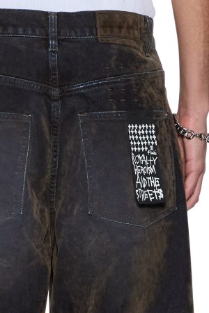 The Maxx Blur Ink is an exaggerated straight leg jean with a long rise. Made from a European rigid indigo denim with a printed flocked coating. and a lazer light stone wash. Finished with t-box and 4×4 studded metal branding. and Ksubi branded hardware.