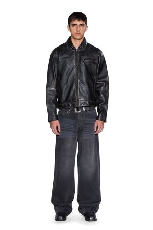 The Maxx Carbon Black is an exaggerated straight-leg jean with a long rise. Made from premium rigid black denim with a resin-coated dirty wash. it features dirty grease splatters and oil marks. finished with signature Maxx T-box and 4×4 embroidery and Ksubi hardware.
