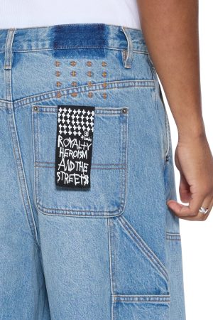 The Maxx Operator Short True is an exaggerated wide-leg jean short with a long rise. featuring carpenter panels. a right leg carpenterÕs pocket tab. cutaway pockets. and back patch pockets. Made from premium rigid indigo denim with a vintage stone wash. it is finished with signature T-box and 4×4 embroidery and Ksubi branded hardware.