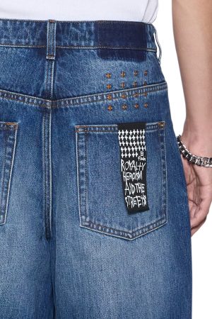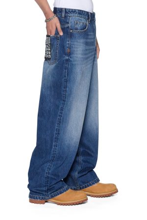 The Maxx Vintage Blue Jean is a mid rise oversized fit with a loose leg opening and exaggerated stacking at the ankles. Made from premium rigid denim in a mid wash. it features light seam grinding. a ghosted back patch. and Ksubi branding.