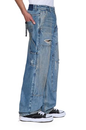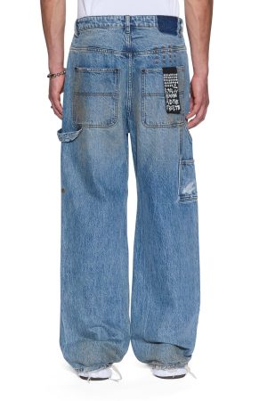 The Operator Pant 70’s Blue is an exaggerated straight-leg jean with a long rise. featuring carpenter panels. a right-leg carpenters pocket. tab cutaway pockets. and back patch pockets. Cut from premium rigid denim with a heavy stonewash and authentic ageing treatments. it features deconstruction. oil blotches. and heavy seam aging. Finished with signature T-box and 4×4 embroidery and Ksubi branded hardware.