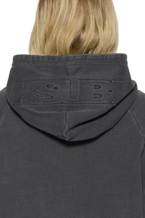 The Origin Hoodie Charcoal is an oversized boxy fit hoodie with raglan sleeves and rib hemband and cuffs. Made from a premium loop-back cotton fleece in our signature ‘Charcoal’ colourway with an aged wash to give the worn-in look. Featuring a front pouch pocket and Ksubi embossed branding across the front chest and top of the hood. Finished with Ksubi branded hardware and T-box and 3×4 embroidery.