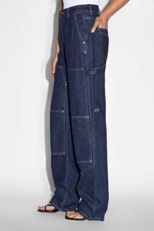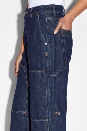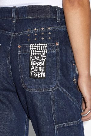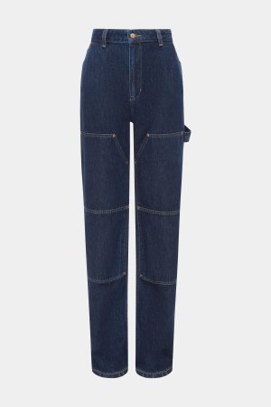 The Playback Carpenter Legacy are a relaxed tapered jean with a super high rise. This style features a front and back carpenter pocket detailing. along with a hammer loop. double front knee patches for added functionality. Made from premium lightweight rigid denim in the dark blue ‘legacy’ colourway. The jeans are detailed with copper-branded hardware. a contrast tobacco T-box. and 3×4 embroidery.