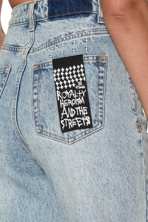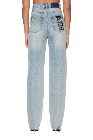 The Playback Karma is a relaxed straight leg denim jean with high waist and classic Ksubi five pocket detailing. Made from premium cotton denim in a light vintage stonewash. This style features branded hardware. signature crosses and removable pocket tag.