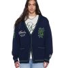 The Playoff Cardigan Navy is a relaxed fit knit made from navy cotton. featuring a four-button closure. ribbed hem. and tan tipping stripe. Detailed with a cross dollar boucle patch at the chest. high-density embroidery across the body. felt applique on the sleeve. and finished with Ksubi’s signature sleeve tag. T-box embroidery. and branded hardware.
