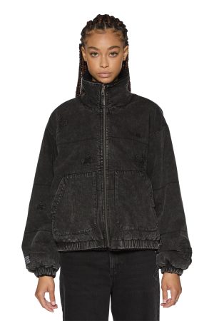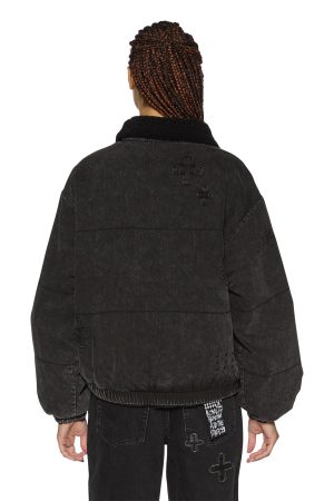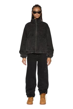 The Reversible Puffer Jacket Noir Kraftwerk/Black is an oversized zip-through jacket made from premium rigid denim in washed black. fully reversible to an ecru fleece side. With lightly padded body and sleeves. it features Ksubi ‘plus’ applique denim patches. Ksubi T-box and 3×4 branding. anti-silver branded hardware. a ‘Sign of The Times’ silicon print on the denim outer. and an embroidered cross-dollar sign on the fleece side. making it a versatile statement piece. Style it with the matching Low Rider Noir Kraftwerk for a coordinated look.