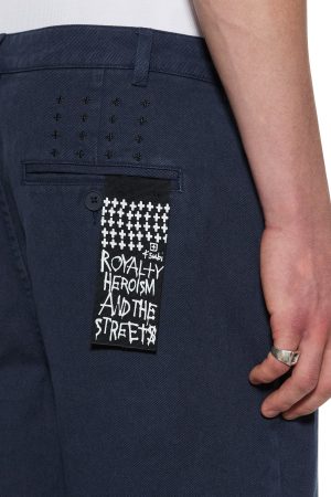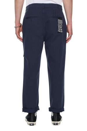 The Rival Chino Navy is a relaxed-fitting. long-rise chino pant crafted from cotton drill and garment-dyed in tan with a light aged wash. Designed with a straight leg. inseam pockets. back welt pockets. contrast signature t-box and 4×4 embroidery. and tonal Ksubi branded hardware.