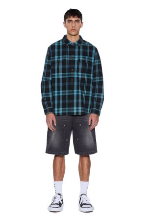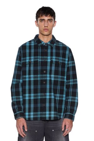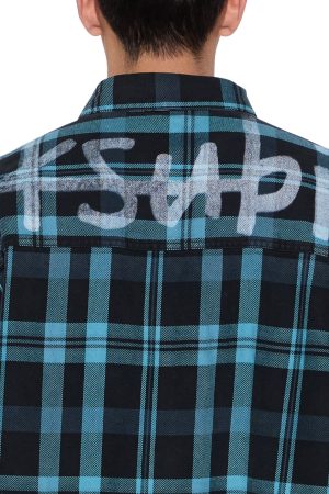 The Rosebowl LS Shirt 1999Blue Check is an oversized long-sleeve button-down flannel shirt with a scooped back hem. cut from soft cotton flannel in a black check pattern and treated with a softening garment wash. Designed with chest pockets featuring button closures. a front buttoned placket. and seasonal chain stitched Ksubi embroidery on the front pocket and back. it’s finished with signature T-box and 4×4 branding and Ksubi branded hardware.