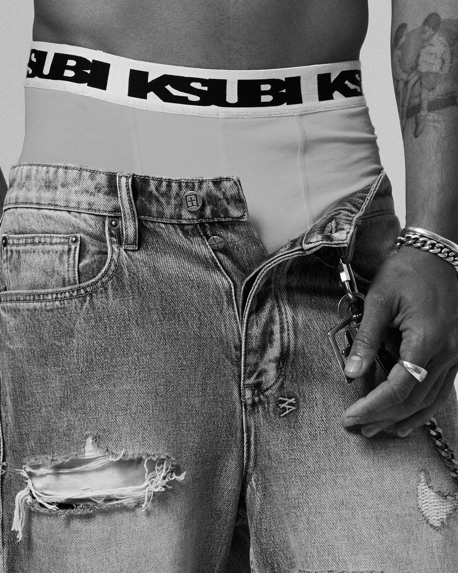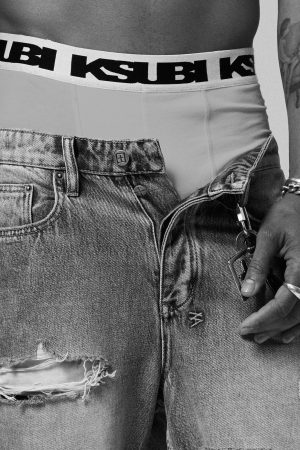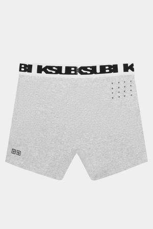 The Royalty Boxer Brief Grey is a regular fit boxer short with an elastic waist band. Made from a premium grey stretch cotton and finished with a printed signature t-box on the left thigh & 4×4 branding below the back waistband. These boxers feature a custom jacquard elastic waist band with black Ksubi SOTT logo.