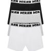 The Royalty Boxer Brief 3 Pack White is a set of 3 regular fit boxer shorts made from a premium stretch cotton. This pack comes with 3x white boxer shorts that feature a custom elastic waistband branded with the Ksubi logo and signature printed details.