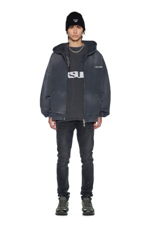 The Rugged Ekcess S Tee Blasted is a boxy. oversized fit t-shirt with dropped shoulders and a raw cut back hem. Crafted from premium cotton jersey garment dyed vintage blue. it showcases reversed overlocked side seams. signature rats tail. seasonal artwork at the front. and a sprayed high/low appearance. Finished with T-box and 4×4 embroidery branding.