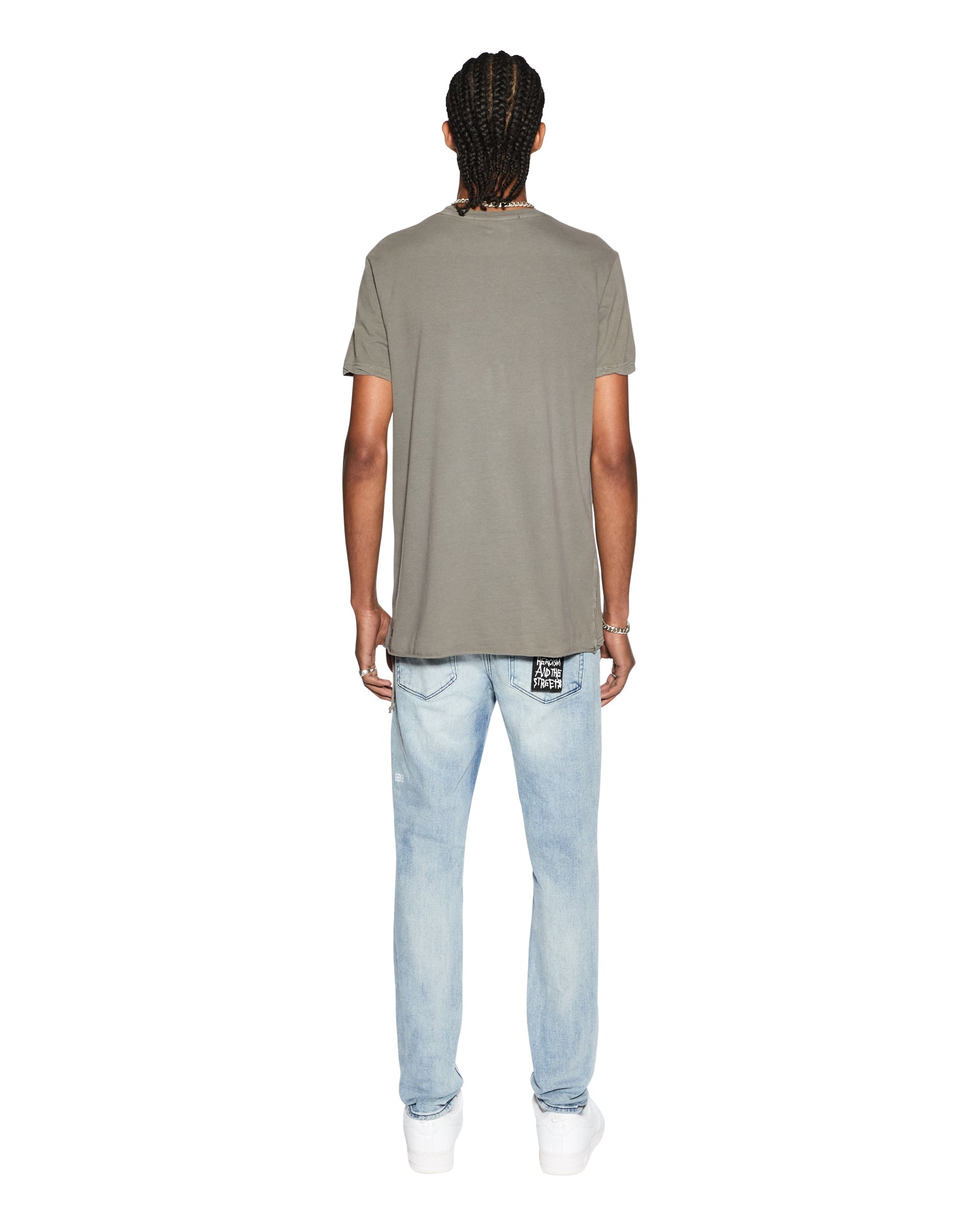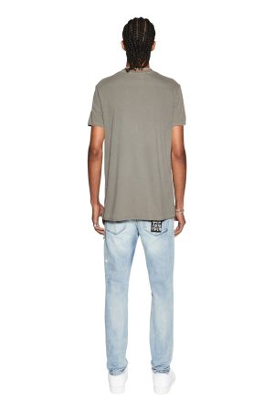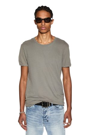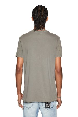 The Seeing Lines T-shirt is a classic style tee constructed from 100% premium lightweight cotton and is featured in a vintage grey colourway. Taking elements of modern street style. it features a brushed fabrication. short sleeves. crew neck. twisted hemline and the signature Ksubi rats tail.