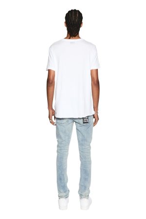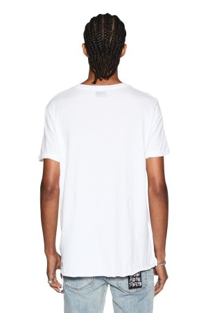 The Seeing Lines T-shirt is a classic style tee constructed from 100% premium lightweight cotton and is featured in a white colourway. Taking elements of modern street style. it features a brushed fabrication. short sleeves. crew neck. twisted hemline and the signature Ksubi rats tail.