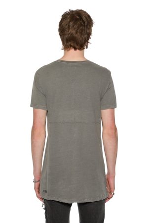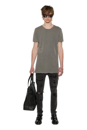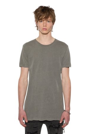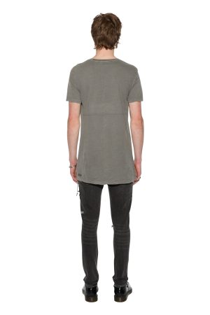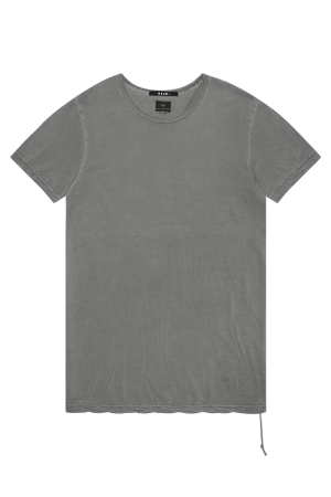 The Sioux T-shirt is a modern oversized style tee constructed from 100% premium lightweight cotton and is featured in a vintage grey colourway. This year-round staple piece features a trashed hemline. short sleeves. crew neckline. twisted hemline and the signature Ksubi rats tail.