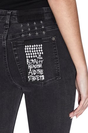 The Spray On Jean is a skinny fit jean made in a mid rise with a cropped ankle. This design is part of the Ksubi Skins range that has been made from a premium black stone washed denim with snap back recovery that feels like a second skin and also features slashes at the knees. five pocket styling. zip fly with branded hardware. signature cross embroidery. made from a premium cotton stretch denim and comes in a black colourway.