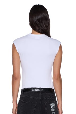 The Staple SS Tee White is a fitted short sleeve tank with a crew neckline. Made from a cotton blend rib with Ksubi logo embroidery on the front chest. cross dollar embroidery at front and T-box embroidery at the back hem.
